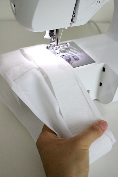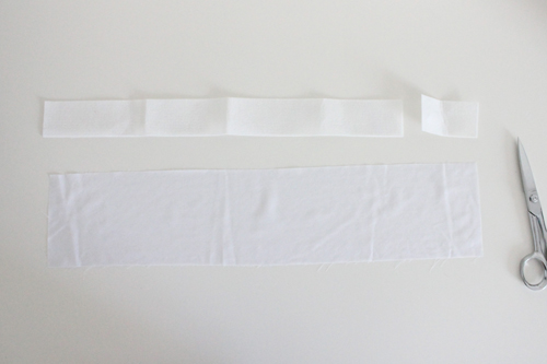*Also cut a 5 inch wide strip of white cotton fabric the same length as your interfacing.