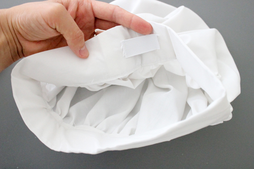 At first, I tried remedying the problem with a little strip of elastic. It helped a little bit but not enough.