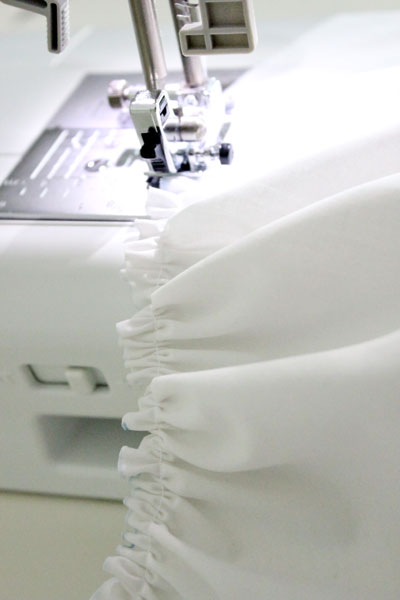 Pull the threads tight as needed. Then REMEMBER to adjust your tension and stitch length settings back to where they normally are.